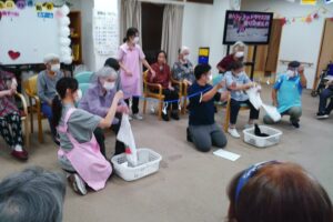 デイサービスの皆さんにも季節を感じていただき、運動に親しみを持っていただけるよう、