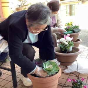 玄関先でお花が好きな方々にお願いして、秋・冬のお花を植えて頂きました🌷