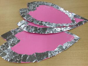 ピンクのお花に銀色の折り紙を貼り絵してもらいました🌸