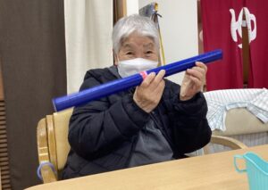 湯もみ体操用で用意した棒で楽しそうにダンスされる方をパシャリ📷笑