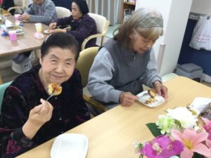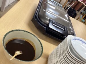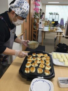 という事でセンター長自ら焼きまんじゅうを焼いてくれました🎵