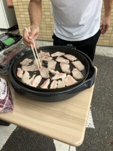 焼肉をします。
