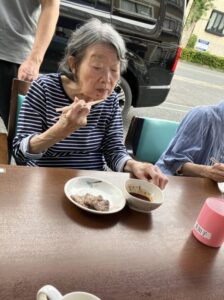 「外で食べると