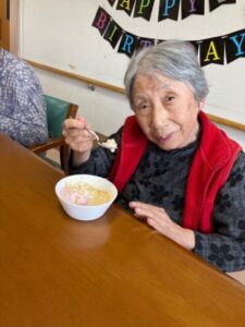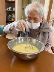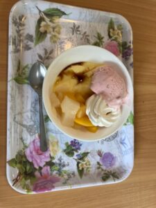 プリンの上に果物とアイスをのせて、見た目も華やかで皆さん大喜びでした🍮🍓🍨 「甘くておいしいね」と笑顔があふれる、温かい時間となりました。