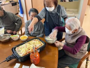トッピングを選びながら、「これも乗せたいね」「美味しそう!」と会話も弾み、焼きあがったピザを皆さんで美味しくいただきました。