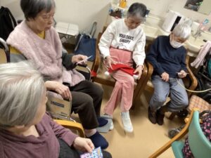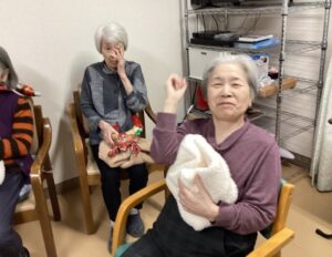 ボランティアさんから、スヌード🧣を皆さんにプレゼント。