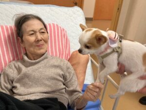 ワンちゃん🐶の方もだいぶ慣れ、落ち着いて抱っこされてます。