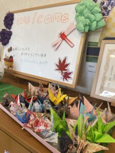 玄関には折り紙が得意な入居者様の折り鶴があります