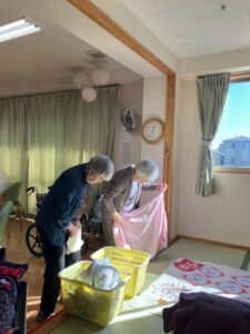 スタッフがやろうとすると「やるよ」と仰って下さる入居者様と様々でスタッフも助かっています