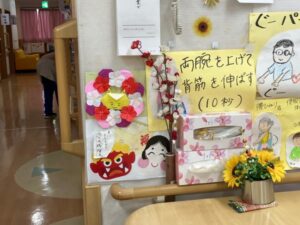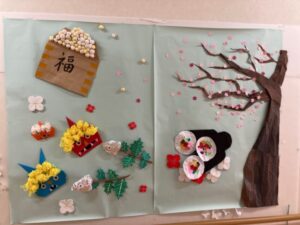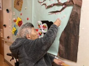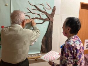 みんなで楽しく飾り付けを楽しまれ途中経過では入居者様主体で構想をスタッフへ指示