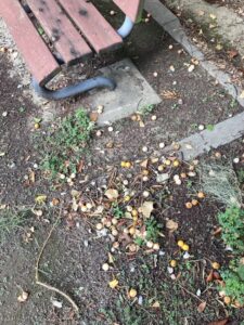 近くの公園には大きなイチョウの木があるのですが、いっぱい銀杏の実をつけており