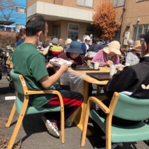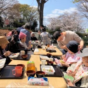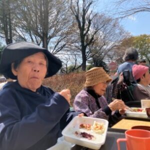 皆様、外に出て頂いて、お花見弁当を食べました。