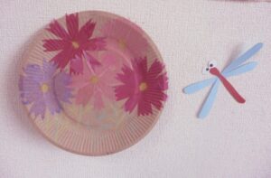 応用編。紙皿にも貼ります。これも素敵ですね。