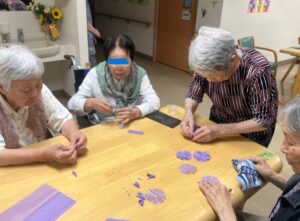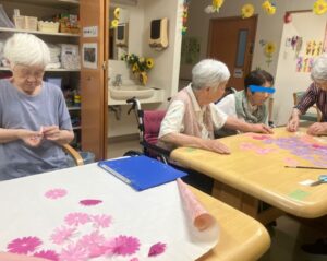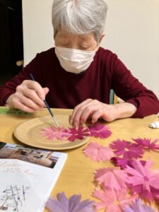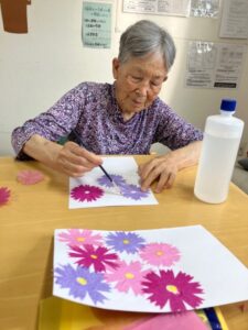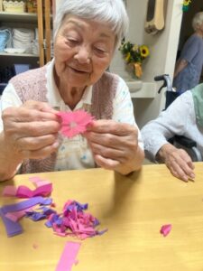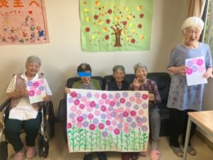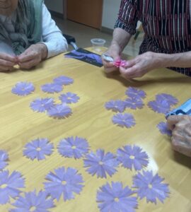 お花紙を使ってコスモスをいっぱーい作りました。