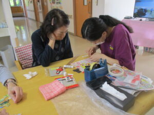 季節の飾りを一緒に作りたいと入居者様が「お姉さん、今日来てる?」と