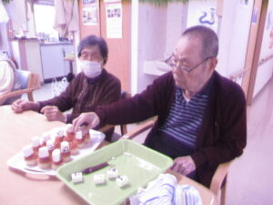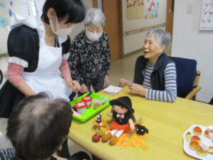 小さいマドレーヌはイチゴジャムを塗って顔のマシュマロを乗せて出来上がり~(^_^)v