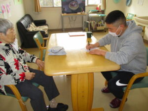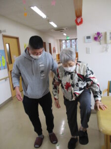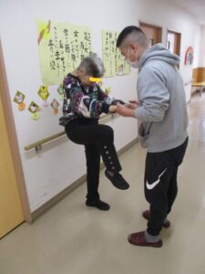 毎月理学療法士が来所して身体の動きを見ていただき本人に
