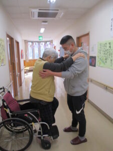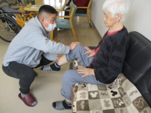 車いすの方も痛くないほうの足でリハビリの仕方を