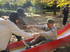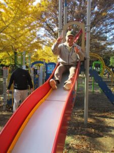 子どもが滑り台で遊んでいるところを見ていたら