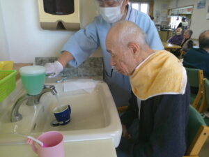 衛生士さんは入居者様とのコミュニケーションがとても上手くて口腔ケアの
