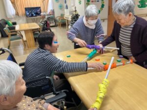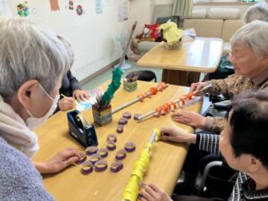こちらは自分の色を決めて棒にすくうように取って行くゲームです。