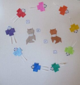 奴さんも好きな色で折って可愛くできました。