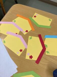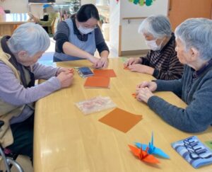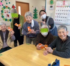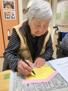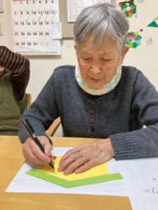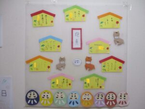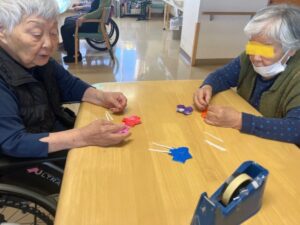 お正月を迎えるため飾りを一緒に作っていただきました。
