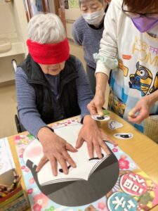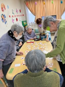 お正月の定番、カルタ取り、負けじと気合が入ります。