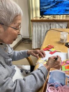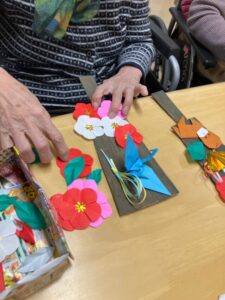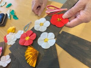 梅の花や馬や水引、扇など好きなものを張り付けて行きます。