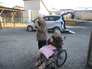 耳の遠いO様に初詣に行きましょうと言うと「さつま揚げ?」とずっと
