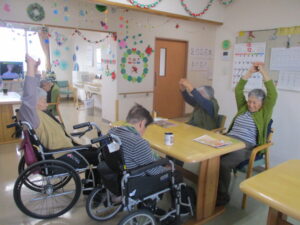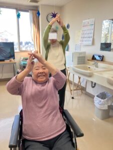 かめはめ波ではありません。指の拘縮予防でグーパー体操です。