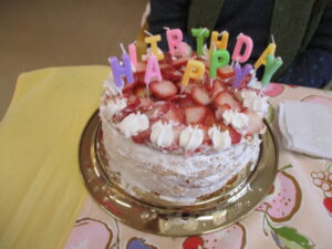 生クリームとイチゴを飾ってロウソクを立て準備万端。