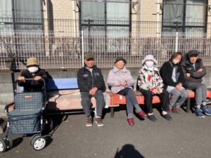 住宅街を1周した後はベンチで日向ぼっこしながら