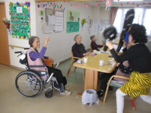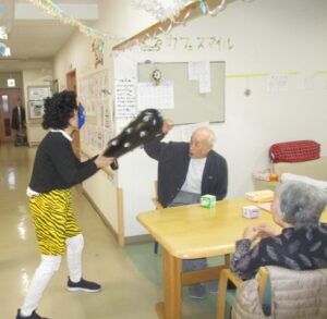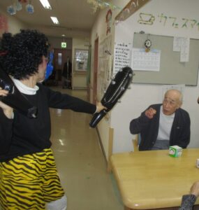 入居者様「何おー。やるか!」ファイティングポーズを勇ましく取ります。
