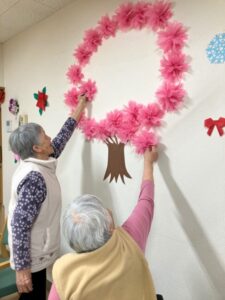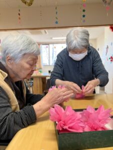 お花紙でいっぱい桜を折りました。