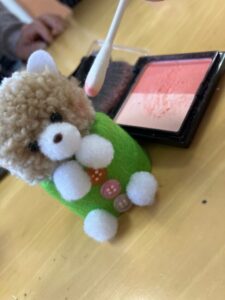 ほほ紅を挿します。このひと手間が可愛アップのポイント!