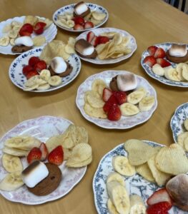 ポテトチップス、バナナ、イチゴ、チョコチップクッキー、マシュマロを用意♪