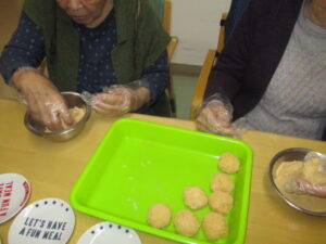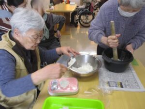 入居者様「これくらい?」スタッフ「たっぷり付けちゃいましょう‼」