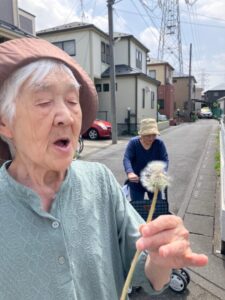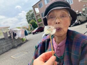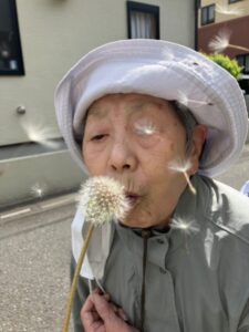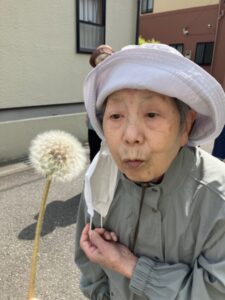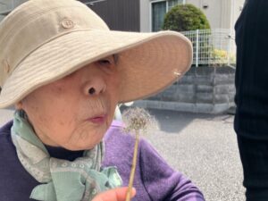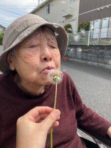 タンポポの綿毛♪みーっけ。 童心に返って息を吹きかけ種を飛ばしてみます。