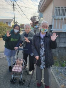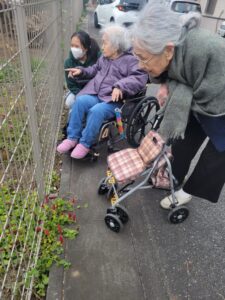 こちらは、すみれの入居者様のお散歩のご様子です。