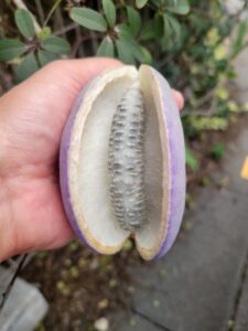 パカット割れてこれは食べ頃? 豆知識:開け実からあけびになったらしい・・・(納得)