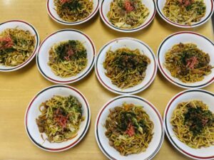 餃子を綺麗に並べて下さいました~👏(芸術的) 焼きそばも完成しました❣