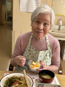 👇エプロンを脱ごうとしたら、あら👀3人も集まりお手伝いしています(優しいです😊)