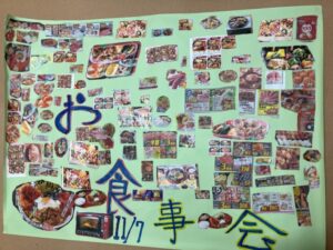 食欲の秋も相まって女性入居者様が集まり美味しそうなお弁当などの広告を切っています✂