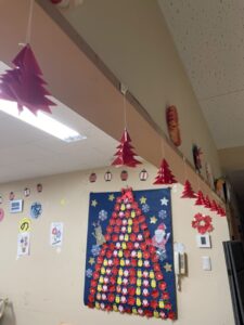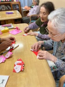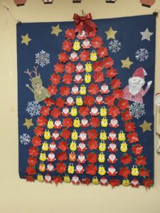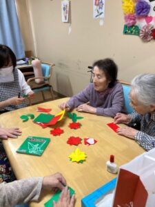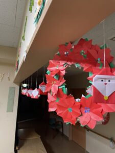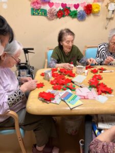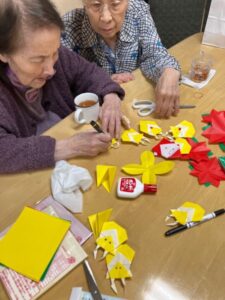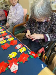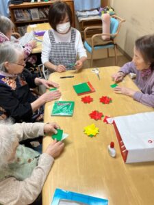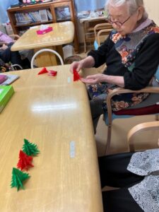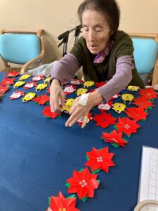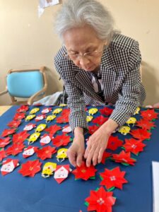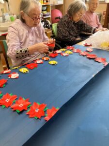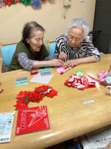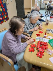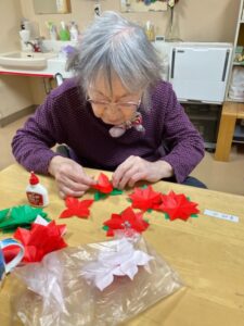 すみれの皆さまの作成風景です。ポインセチア・トナカイも折り紙です👏