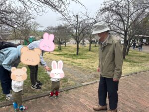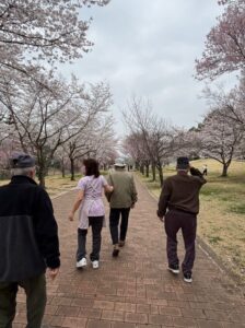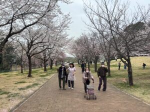 途中、小さなお子さんを見て足を止め目を細める入居者様😊(可愛い双子ちゃん)