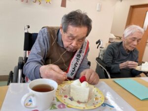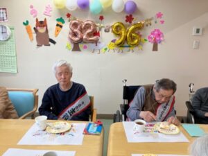 お誕生日が近いおふたりの男性入居者様❣ 歓迎会を兼ねたお誕生日会のご様子です🎉