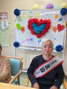 今日の主役のたすきに戸惑いがあるかもしれませんが(笑)少しずつホームの生活に慣れ