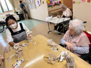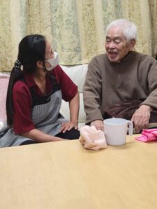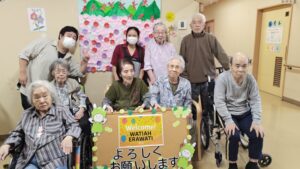初日ですが入居者様の心を掴んだ様子、素晴らしいコミュニケーション力を発揮しています。