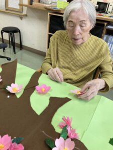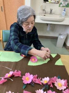 桜の花が咲く木を作りましたホームのリビングが一気に春色です🌸